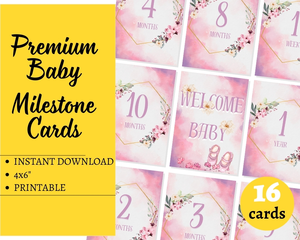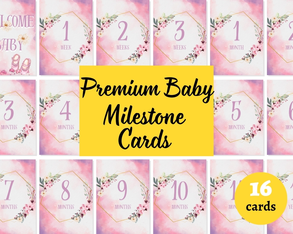 Premium Baby Milestone Cards – Pink Flower Theme (16 Printable Cards)